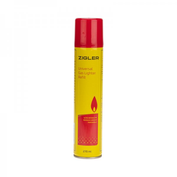 Газ для зажигалок, металлический баллон 270 мл (8 переходников) — предназначен для заполнения газовых зажигалок, а также других различных газовых приборов — ламп, обогревателей, светильников и т. п. Такой популярный способ заправки зажигалок является самым экономичным способом. Этот газ изготовлен по новейшей технологии, пройдя несколько этапов очистки. Он легко воспламеняется и почти не имеет запаха.