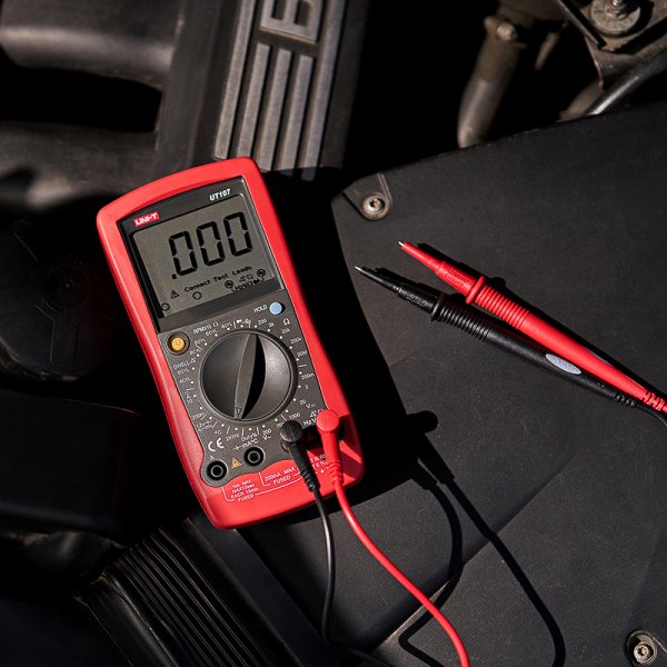 Автомобильный тестер UNI-T UT107. UT105 — прибор, специально разработанный для снятия автомобильных показателей. С его помощью можно измерять число оборотов коленчатого вала, угол замкнутого состояния контактов прерывателя трамблера, сопротивление, постоянное и переменное напряжение, постоянный и переменный ток, диод, звуковое устройство и транзистор. Данный прибор — незаменимый помощник при обслуживании и ремонте автомобиля.