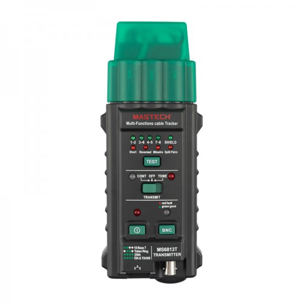 Трассоискатель MASTECH MS6813T — универсальный прибор с большим количеством функций. Предназначен для обнаружения скрытой проводки, как рабочей, так и поврежденной, экранированной и неэкранированной витой пары, проверки коаксиального кабеля, тестирования телефонной линии и LAN кабеля, проверки целостности и конфигурации сети, выявления замкнутых и разомкнутых кабелей, выявления разрывов цепи и коротких замыканий. Прибор обладает выдающимся функционалом и будет полезен как профессиональным строителям и рабочим, так и любителям, за счет простого и понятного управления и отсутствия необходимости в настройке.