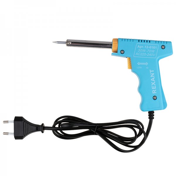 Импульсный паяльник 30/70 Вт – имеет длинное тонкое жало, которым можно произвести пайку даже в трудно доступных местах. Жало быстро разогревается до нужной температуры.