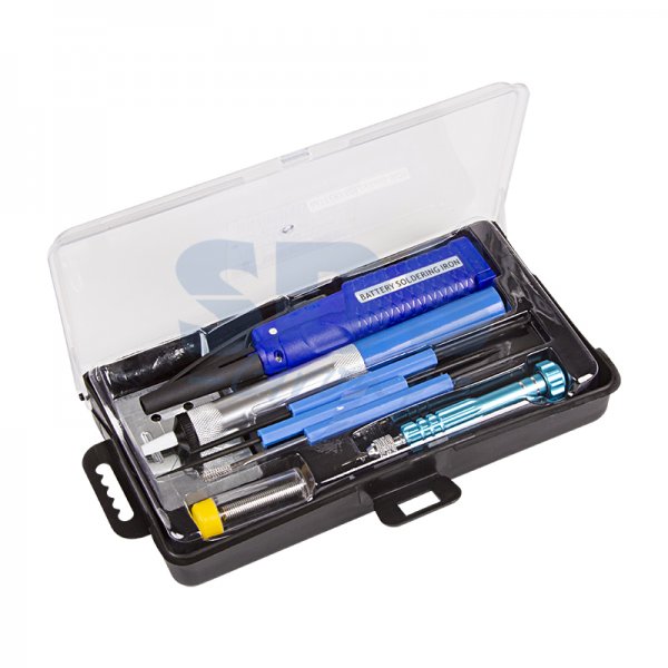 Набор для пайки (паяльник 8 Вт, оловоотсос, подставка, припой, отвертка, инструмент для монтажа) REXANT позволит эффективно, быстро и самостоятельно отремонтировать электротехнику или произвести монтаж оборудования в местах, где отсутствует доступ к электропитанию.