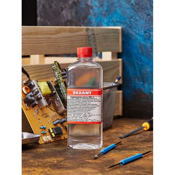 ПолиМетилСилоксановая жидкость ПМС-5 (ГОСТ 13032-77) REXANT — бесцветная прозрачная химически инертная и коррозионностойкая силиконовая жидкость без запаха.