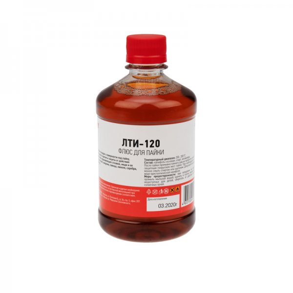 Флюс для пайки ЛТИ-120 500мл (с кисточкой) REXANT предназначен для удаления оксидов с поверхности под пайку, улучшения растекания жидкого припоя и защиты от действия окружающей среды при пайке нержавеющих сплавов, меди и её сплавов, оцинкованных изделий, нихрома, свинца, никеля, серебра, кадмия, палладия, висмута. Данный низкотемпературный флюс применяется при пайке деталей или поверхностей припоями оловянно-свинцовой группы в температурном диапазоне 200-300℃. После пайки смывка не требуется, более того, остатки флюса служат защитным покрытием мест пайки. При необходимости его возможно растворить спиртом или ацетоном. Крышка-кисточка позволит наносить дозированное количество флюса на участки пайки.