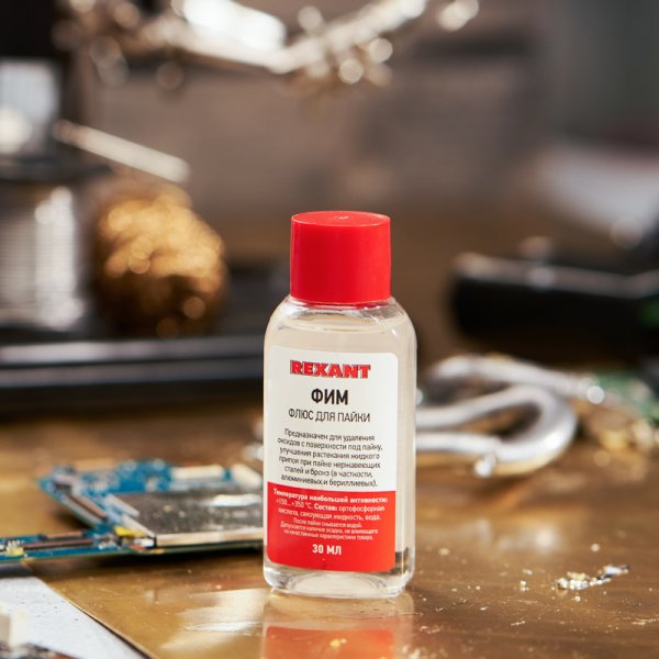 Флюс для пайки ФИМ 30 мл REXANT предназначен для удаления оксидов с поверхности под пайку, улучшения растекания жидкого припоя при пайке нержавеющих сталей и бронз (в частности алюминиевых и бериллиевых). Изготовлен бесканифольный флюс на основе ортофосфорной кислоты и лучше всего подходит для пайки нержавеющих сталей и нихрома, в остальном аналогичен паяльной кислоте.