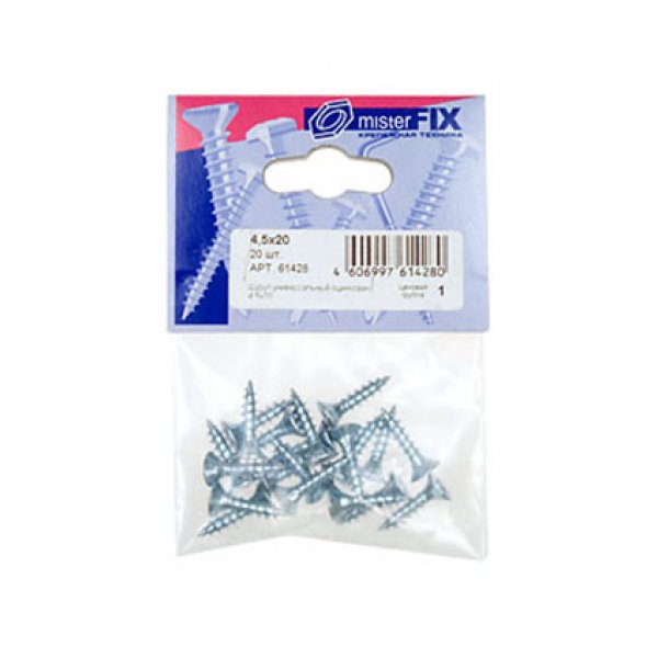 Бренд: ЦКМВид: шуруп универсальный оцинкованныйГруппа изделий: шурупы-саморезыДиаметр, мм: 4.5Длина, мм: 20Количество в упаковке: 20
