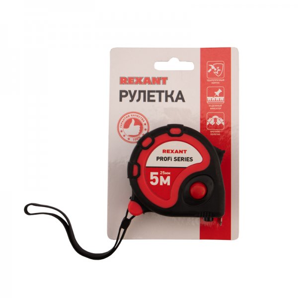 Рулетка – надежный и незаменимый помощник при проведении измерительных работ в строительстве, хозяйстве, ландшафтных и геодезических исследований. Эргономичный двухкомпонентный корпус. Прочное стальное измерительное полотно позволяет избежать изломов при большом вылете ленты.