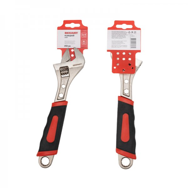Разводной ключ REXANT 250 мм предназначен для выполнения сборочных и разборочных работ с применением шестигранного крепежа. Инструмент подходит для сантехнических работ с трубными системами. Ключ легко регулируется, а на рабочей части нанесена шкала для удобства установки необходимого размера между губками.
