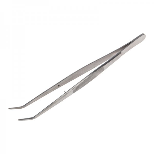 Пинцет изогнутый, узкий, фиксатор, рифленый 155 мм ПРОФИ предназначен для манипуляции маленькими предметами, которые невозможно, неудобно, либо нежелательно или опасно брать незащищенными руками.