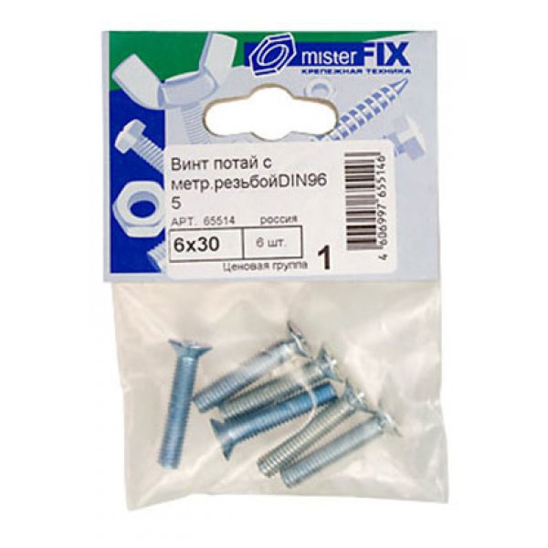 Бренд: ЦКМГруппа изделий: метрический крепежДиаметр, мм: М6Длина, мм: 30Количество в упаковке: 6