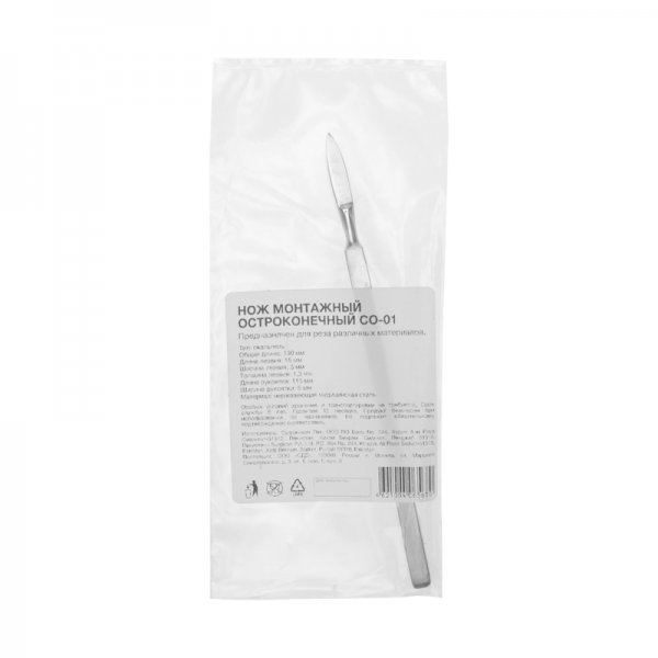 Скальпель малый остроконечный СО-01 130 мм выполнен из нержавеющей стали медицинского назначения, что обеспечит максимально долгий срок службы. Скальпель представляет из себя одну целую конструкцию, а лезвие, заостренное по самым современным технологиям, обеспечит ровный и тонкий разрез.