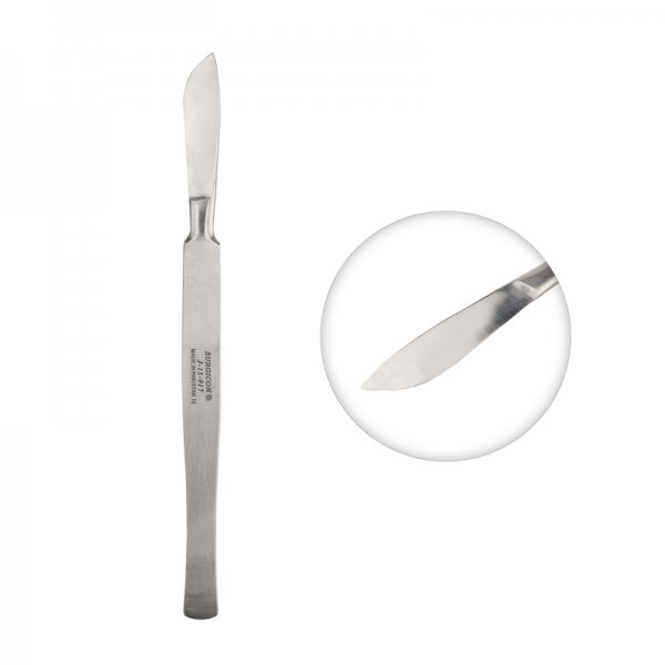 Скальпель средний СК-03 150 мм выполнен из нержавеющей стали медицинского назначения, что обеспечит максимально долгий срок службы. Скальпель представляет из себя одну целую конструкцию, а лезвие, заостренное по самым современным технологиям, обеспечит ровный и тонкий разрез.