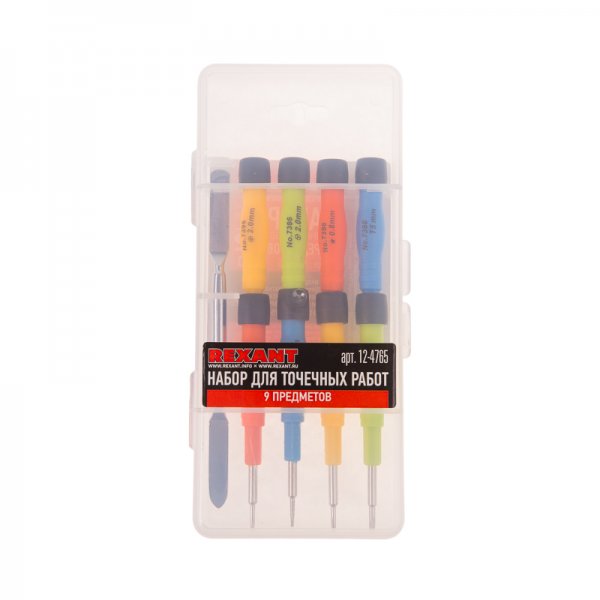 Набор для точечных работ 9 предметов в пластиковом боксе REXANT предназначен для выполнения прецизионных работ в электронике и электромеханике.
