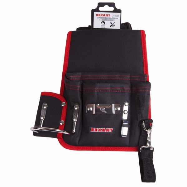 Сумка монтажника поясная с 5 отделениями для хранения инструмента, в том числе металлическая петля для подвешивания молотка. Оптимальное количество инструментов всегда по рукой. Сумка изготовлена из синтетического материала. Регулируемый ремень сумки в комплекте.