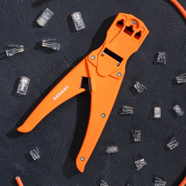 Кримпер REXANT HT-468S — универсальный инструмент для обжима разъемов RJ-45 (8P8C), RJ-12 (6P6C), RJ-11 (6P4C и 6P2C) и RJ-10 (4P4C), а также для снятия изоляции и обрезки проводов.