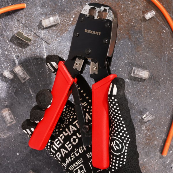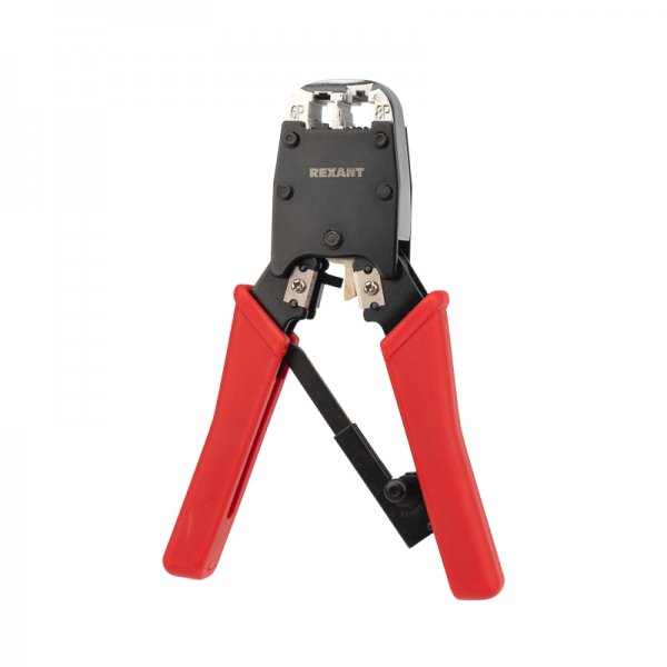 Кримпер REXANT HT-500R — универсальный инструмент для обжима разъемов RJ-45 (8P8C), RJ-12 (6P6C) и RJ-11 (6P4C и 6P2C), а также для снятия изоляции и обрезки проводов.