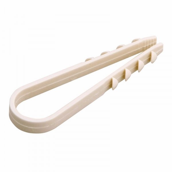 Дюбель-хомут — два в одном. Предназначен для крепления провода, пучков проводов, гибких и жестких труб к бетону, природному камню, полнотелому кирпичу и пенобетону.