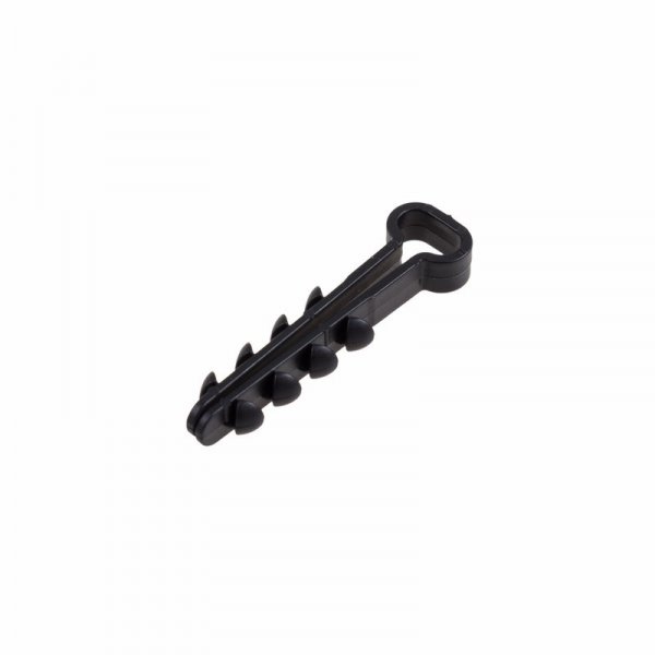 Дюбель-хомут сочетает в себе сразу два элемента — дюбель и скобу. Подходит для крепления кабеля, провода в штробу и под штукатурку. Одинаково хорошо применяется при укладке кабеля в кирпичных и блочных стенах, бетонных перекрытиях, потолках и фундаментах.