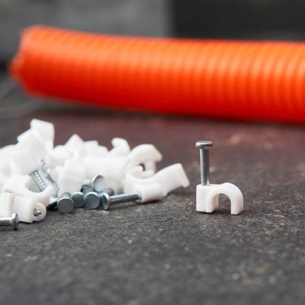 Высококачественный круглый крепеж кабеля REXANT представляет собой дугообразную пластиковую скобу диаметром 4 мм с гвоздём. Используется для мгновенного, а главное надёжного крепления проводов и кабелей к поверхностям стен, несущих конструкций и потолков. Гвоздик выполнен из закаленного металла, что позволит надежно забивать его даже в плотные и твердые материалы, не опасаясь сломать или погнуть гвоздь.