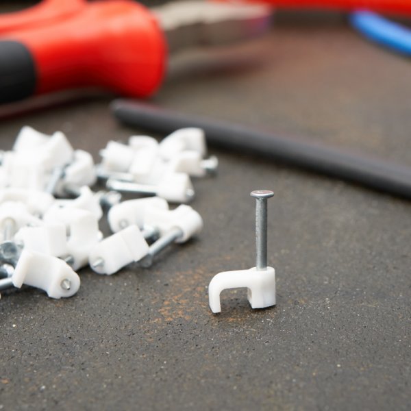 Высококачественный плоский крепеж кабеля REXANT представляет собой П-образную пластиковую скобу, выполненную из качественного пластика и идущую в комплектации с гвоздём из закаленного металла, при помощи которого данная скоба крепит к стенам, потолкам и несущим конструкциям кабели, провода.