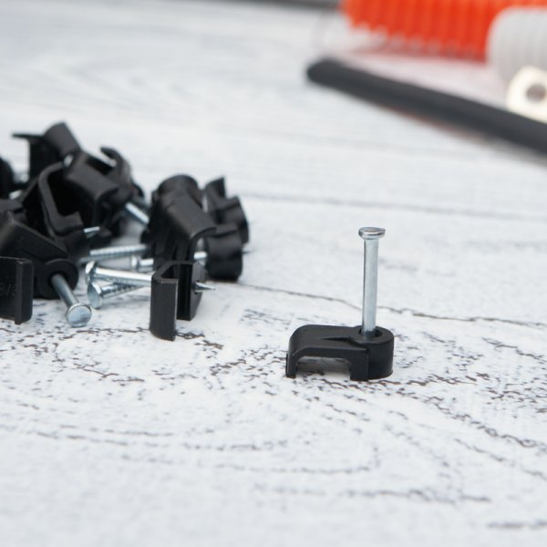 Высококачественный плоский крепеж кабеля REXANT представляет собой П-образную пластиковую скобу, выполненную из качественного пластика и идущую в комплектации с гвоздём из закаленного металла, при помощи которого данная скоба крепит к стенам, потолкам и несущим конструкциям кабели, провода.