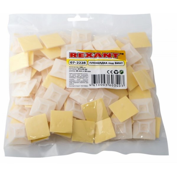 Выполнена площадка из пластика белого цвета и оснащена специальным отверстием под хомут. Размер площадки 28х28 мм.