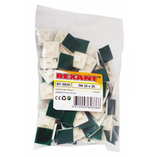 Самоклеющаяся площадка имеет белый цвет и размеры — 25х25 мм.