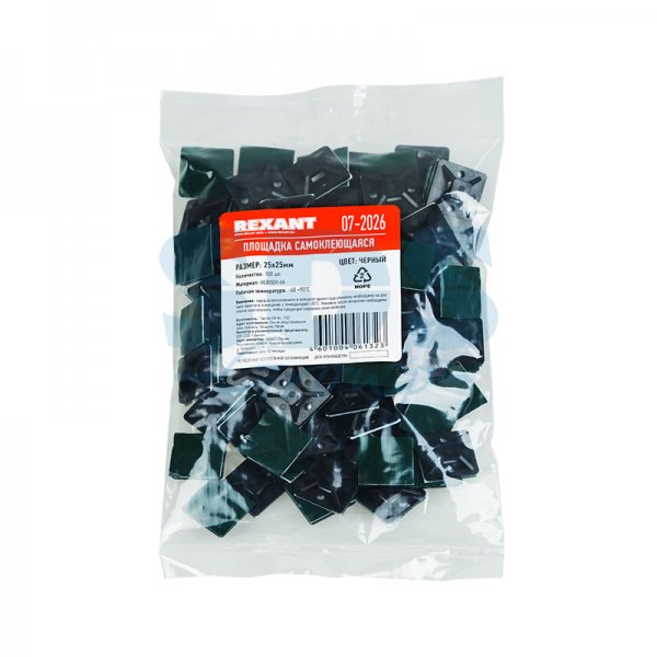 Площадки незаменимы для временной организации кабельной проводки. Для надежного крепления необходимо сначала приклеить площадку к поверхности, выдержать несколько минут, пока происходит процесс адгезии, и далее производить необходимые работы. Самоклеющаяся площадка имеет черный цвет и размеры — 25х25 мм.
