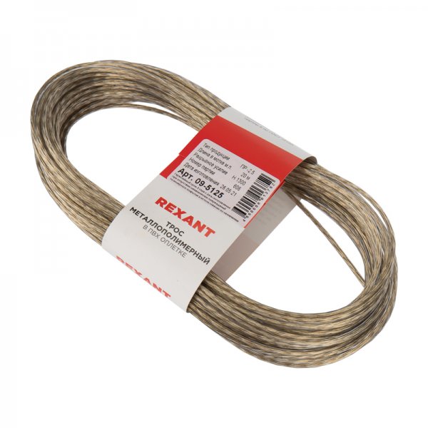 Трос стальной в ПВХ оплетке d= 2,5 мм, прозрачный ( моток 20 м) REXANT