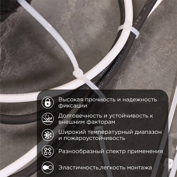 Хомуты нейлоновые гарантируют качество, оперативность и экономичность профессионального электромонтажа, обеспечив максимально надежную фиксацию предметов.