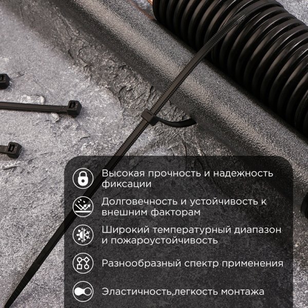 Хомуты нейлоновые «Тройной замок» гарантируют качество, оперативность и экономичность профессионального электромонтажа, обеспечив максимально надежную фиксацию предметов. Являются эксклюзивной продукцией от REXANT!