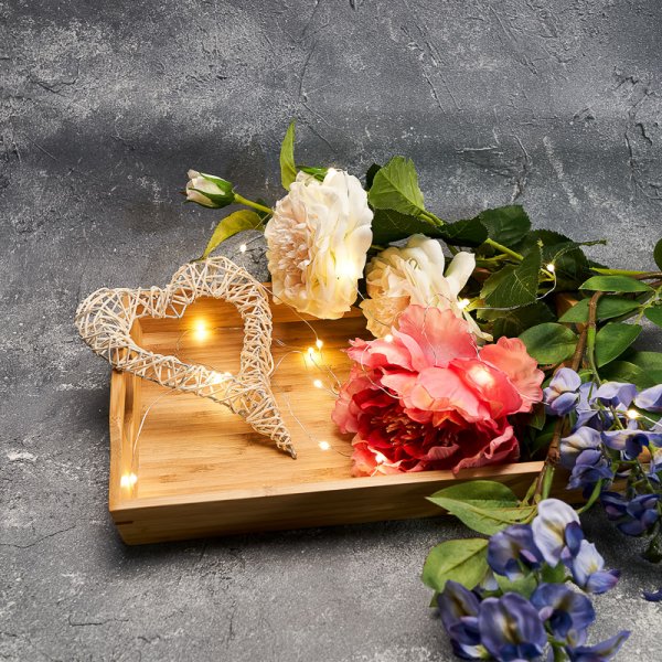 Гирлянда состоит из тонкого провода длиной 2 метра, с расположенными на нем 20 теплыми белыми долговечными светодиодами.
