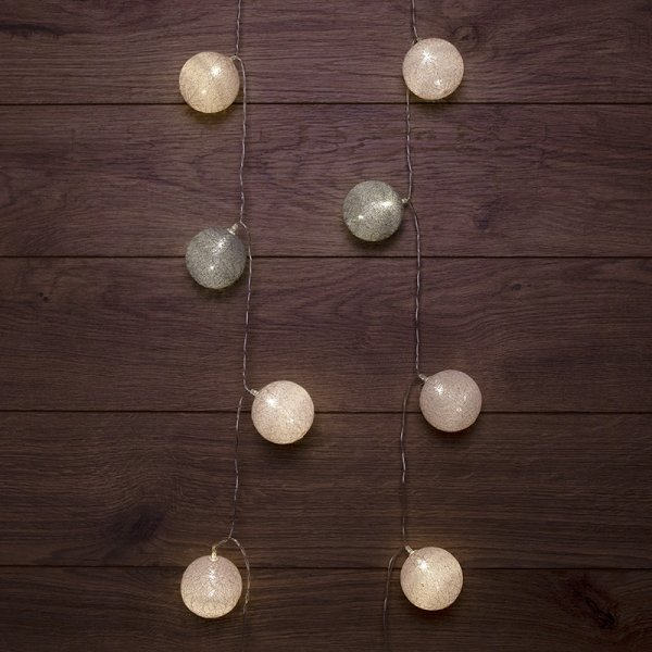 Тайские фонарики «Вельвет» — светодиодная гирлянда, которая станет оригинальным, эффектным украшением интерьера даже в выключенном состоянии благодаря необычному оформлению. На проводе, помещенном в прозрачную изоляцию из ПВХ, находятся 20 волшебных круглых фонариков из хлопковых нитей нити. Цветовое решение изделия гармонично сочетает спокойные оттенки: молочный, персиковый, коричневый. Декоративные элементы мягко подсвечиваются диодами, которые питаются от 2 батареек АА. Автономное питание светодиодных украшений — это безопасное решение для оформления детских комнат. Гирлянда IP20 предназначена для использования в помещениях.