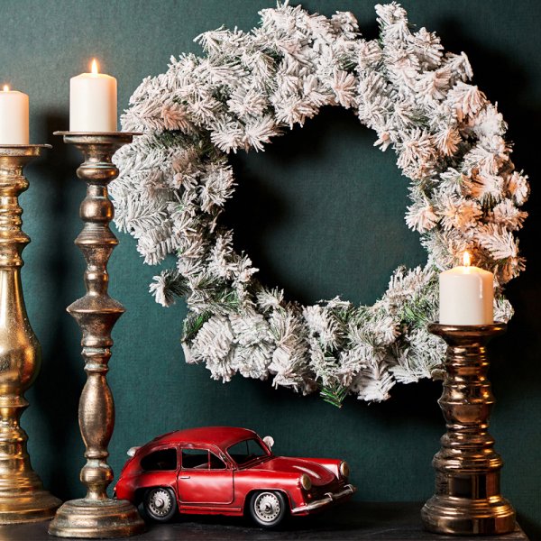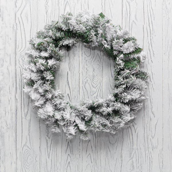 Еловый венок диаметром 60 см — готовое решение для украшения дверей и стен в Новый год. 135 веток с мягкими искусственными иголками уложены в аккуратное кольцо. Пушистая хвоя, выполненная с максимальной реалистичностью, покрыта легким слоем инея. Венок можно украсить светодиодными фигурками, гирляндой, нанести хвойный ароматизатор — получится эффектная композиция, которая будет радовать весь сезон и не потеряет ни одной иголки.