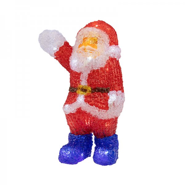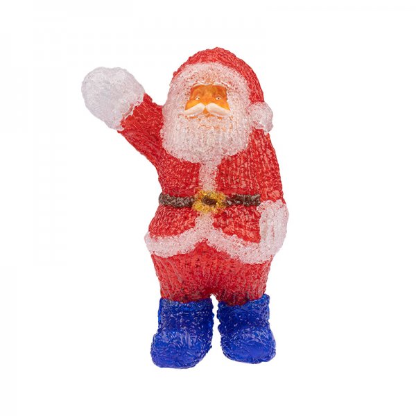 Акриловая светодиодная фигура «Санта Клаус приветствует» высотой 30 см станет прекрасным украшением интерьера, уличной площадки и поможет разнообразить привычное окружение. Светящаяся фигура выполнена из прочного акрила с фактурной поверхностью. 40 ярких диодов излучают белый свет нейтрального оттенка, красиво обрамляя контур и создавая эффект объема. Понижающий трансформатор, идущий в комплекте, адаптирует изделие к стандартной электрической сети с напряжением 230 Вольт. Защита IP65 предполагает использование светодиодной фигуры как в помещениях, так и на улице.