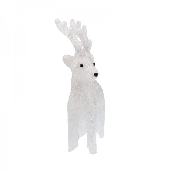 Акриловая светодиодная фигура «Северный олень» высотой 45 см — эффектный декор, который можно использовать как дома, так и на улице благодаря пылевлагозащите по стандарту IP65. 100 ярких диодов излучают белый свет нейтрального оттенка, красиво подсвечивая полупрозрачную акриловую фигуру. Для подключения к электрической сети 230 В предусмотрен понижающий трансформатор на 24 В, который идет в комплекте.