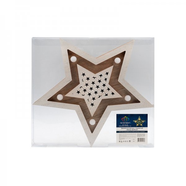Деревянная фигура с подсветкой «Звезда двойная» 30×4×30 см — необычный, эффектный декор, который станет прекрасным украшением интерьера даже в выключенном состоянии. Изделие выполнено в виде пятиконечной звезды, во внутренних углах которой находятся яркие диоды теплого белого свечения. В качестве элементов питания используются 2 мизинчиковые батарейки (тип ААА). Фигуру можно разместить в любом удобном месте, независимо от расположения розеток. Экологичная древесина окрашена безопасным нетоксичным красителем.