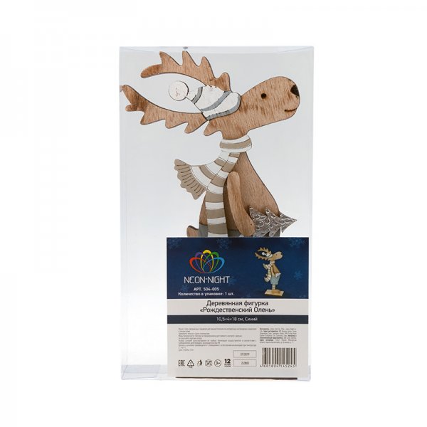 Деревянная фигурка «Рождественский Олень» 10,5×4×18 см представляет серию интерьерного декора с забавными персонажами, словно сошедшими со страниц доброй волшебной сказки. Фигурка оленя выполнена из природной древесины и окрашена безопасным составом, не вызывающим аллергии. Улыбающийся олень держит в руке маленькую металлическую новогоднюю ель — композиция вызывает ассоциации с рождественскими праздниками. Устойчивая подставка позволяет разместить интерьерную фигурку на любой ровной поверхности.