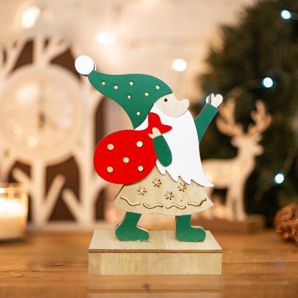Деревянная фигурка с подсветкой «Дед Мороз» высотой 18 см работает от двух батареек типа ААА, поэтому ее можно разместить в любом уголке вашего дома, не уделяя внимание поиску розеток. Изделие, произведенное из экологичных материалов, станет прекрасным подарком к новогодним праздникам, который вызовет только приятные эмоции. 5 экономичных диодов теплого белого свечения мягко обрамляют композицию, создавая атмосферу тепла и уюта. Фигурка предназначена для использования в помещениях с умеренной влажностью.