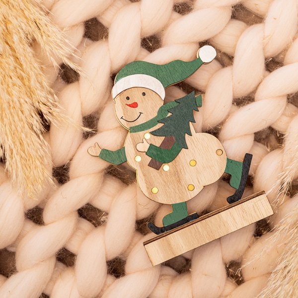 Деревянная фигурка с подсветкой «Снеговик» высотой 18 см выполнена в виде забавного персонажа — одного из главных символов Нового года. Улыбающийся снеговик, застывший в дружелюбном жесте, держит в руках елку. Композиция вызывает ассоциацию с доброй волшебной сказкой и создает радостное настроение окружающим. В качестве элементов питания используются 2 батарейки типа ААА. 5 экономичных диодов излучают теплый белый свет и мягко обрамляют яркую композицию. Изделие произведено из экологичных материалов, не вызывающих аллергию.