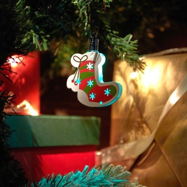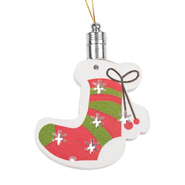 Светодиодная подвесная фигурка «Новогодний носок» 8×6 см выполнена в виде яркого рождественского символа, который напомнит обитателям дома о существовании зимних чудес. Эффектная разноцветная подсветка обеспечивается одним экономичным диодом, непрерывно переключающим варианты из 256 оттенков гаммы. В качестве элементов питания используются батарейки типа LR41, устанавливаемые в металлическую гильзу с резьбовым замком. Для подвешивания предусмотрена петля со шнурком.