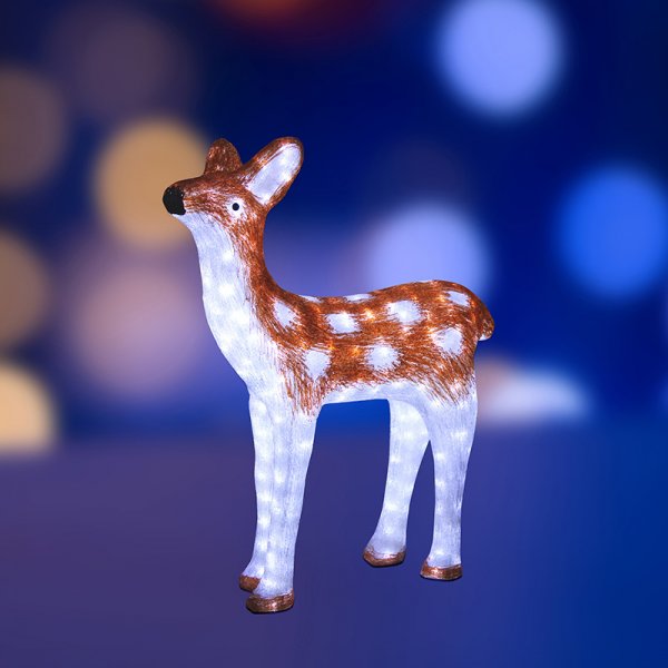 Акриловая светодиодная фигура "Олененок коричневый" высотой 81 см, светящаяся более чем 880 ярких диодов, выполнена по специальной технологии нанесения акрила имитируя шерстяной покров реального животного. Новинка этого сезона позволит Вам создать ту самую, настоящую новогоднюю атмосферу и принести сотни радостных улыбок.