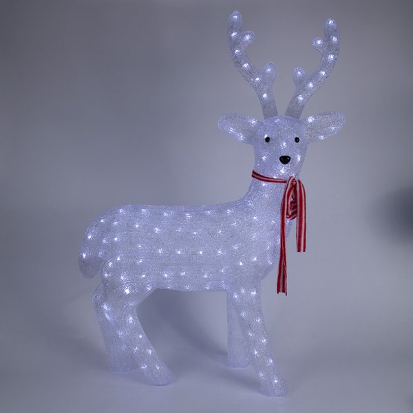 Акриловая светодиодная фигура "Северный олень" высотой 130 см, светящаяся более чем 400 ярких диодов, выполнена по специальной технологии нанесения акрила имитируя шерстяной покров реального животного. Она позволит Вам создать ту самую, настоящую новогоднюю атмосферу и принести сотни радостных улыбок.