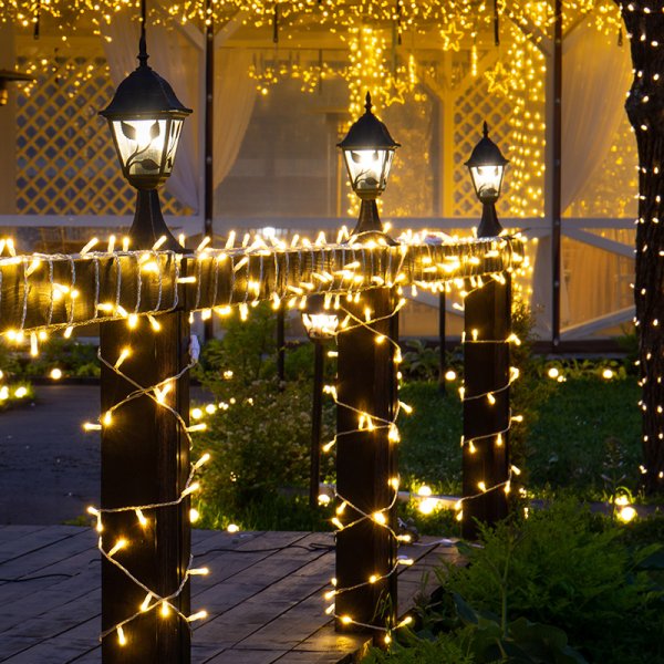 Данная гирлянда имеет прозрачный ПВХ и теплый белый цвет свечения светодиодов.