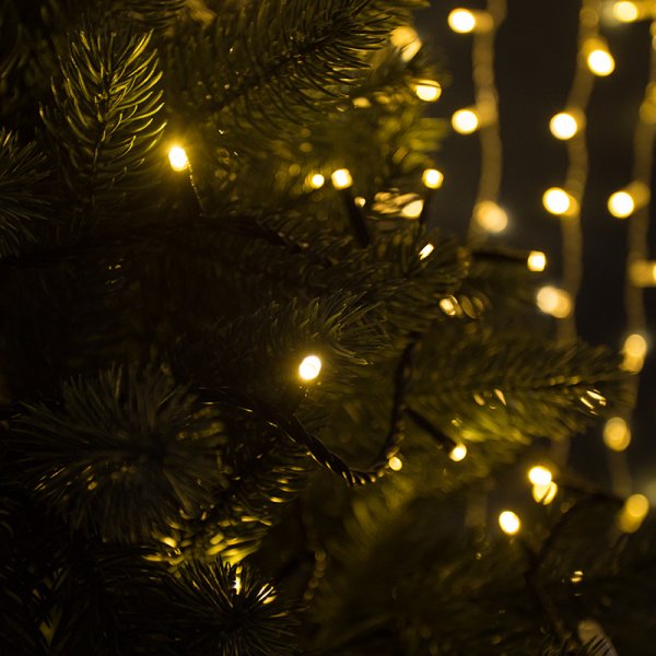 Данная гирлянда имеет черный ПВХ и цвет свечения светодиодов Золото (Gold). Шнур питания входит в комплект.