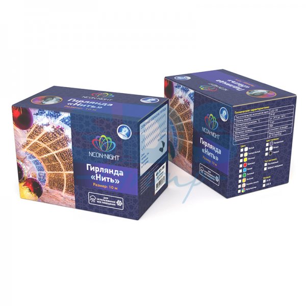 «Нить» является наиболее универсальной из всех гирлянд и используется для украшения как уличных, так и домашних елей, для оформления различных витрин, окон, колонн, элементов интерьера и разнообразных композиций. Часто «Нити» используются под различные проекты по украшению объектов различной значимости, благодаря тому, что может соединяться до 50 метров при подключении на шнур питания 303-500-1 (в комплект не входит).