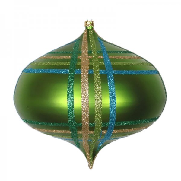 Елочная фигура "Волчок", 16 см, из пластика, цвет зеленый матовый, полоски мульти с блестками