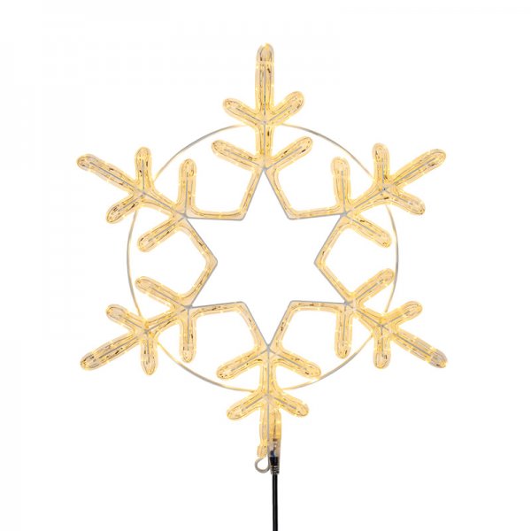 Фигура "Снежинка" изготовлена из светодиодного дюралайта, который закреплен на металлическом каркасе. Такие фигуры используются для украшения фасадов и стен как коммерческих, так и частных домов и дач, торговых центров, елей, витрин магазинов, кафе и многих других объектов. Фигура имеет в комплекте шнур питания с вилкой, благодаря чему удобна в подключении. Наличие специального "ушка" на металлиском каркасе заметно облегчит ваш монтаж.