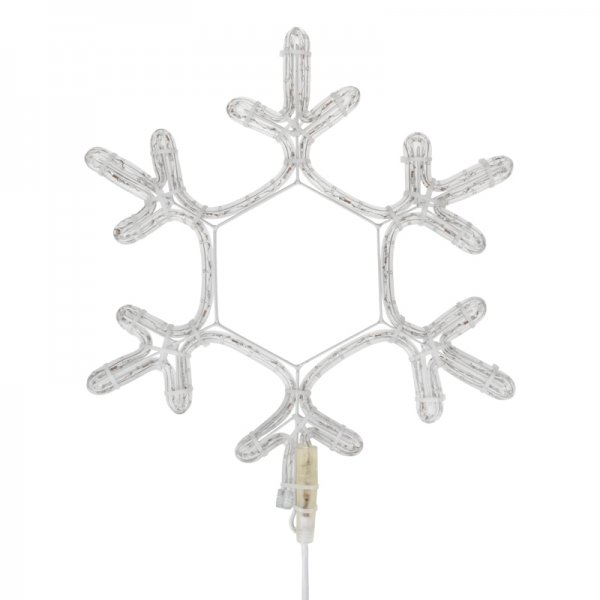 Снежинка имеет размер 45*38 см и Белое свечение светодиодов.