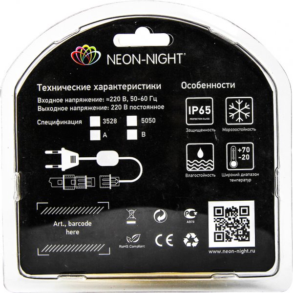 Кабель питания для подключения LED ленты NEON-NIGHT 220 В со специальным разъемом, 1 метр в блистерной упаковке.