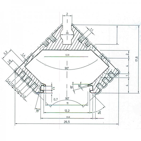 Профиль алюминиевый анодированный врезной угловой для светодиодной ленты (до 10 мм), без рассеивателя.